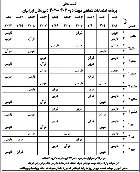 برنامه امتحانات شفاهی نوبت دوم 403-402